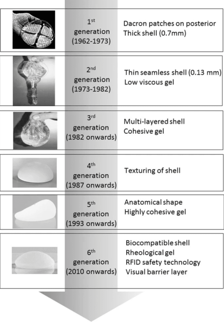 シリコンインプラント60年の歴史(第1世代〜第6世代)